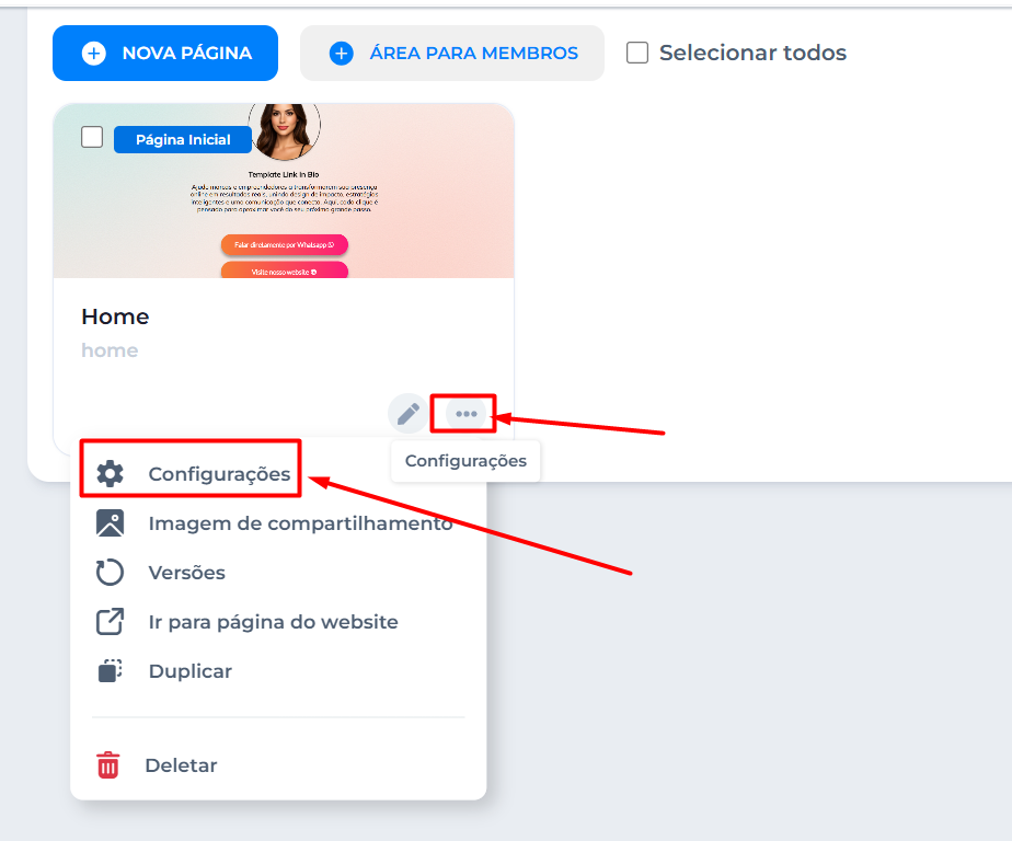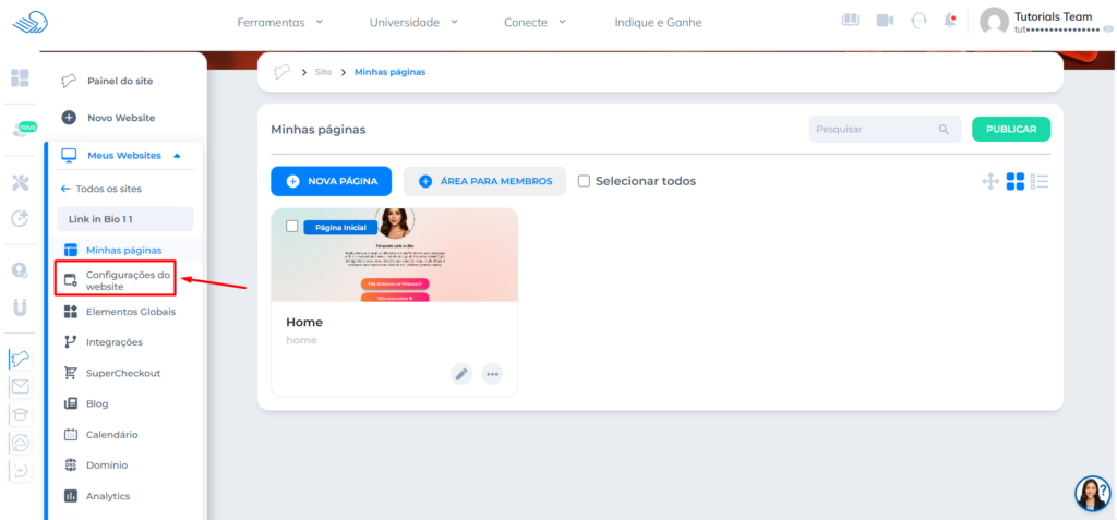 Para configurar a metatag de redirecionamento é necessário que o dominio esteja conectado em um website, pode ser um template em branco, pois isto será apenas para que possa ter acesso as configurações de script do site.
