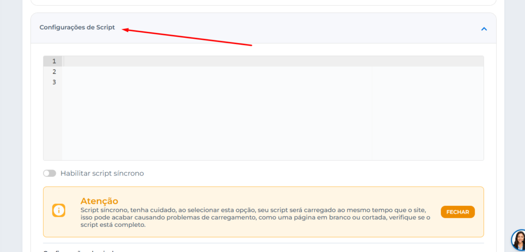 Após ter o dominio conectado ao website, clique em configurações de script no costrutor cheetah builder.