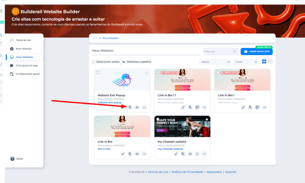 Passo 1 – Acesse sua conta Builderall e abra a ferramenta Construtor de Websites.