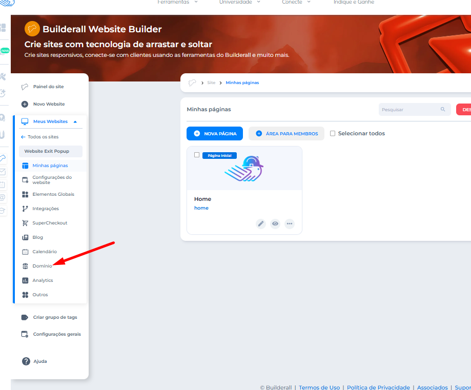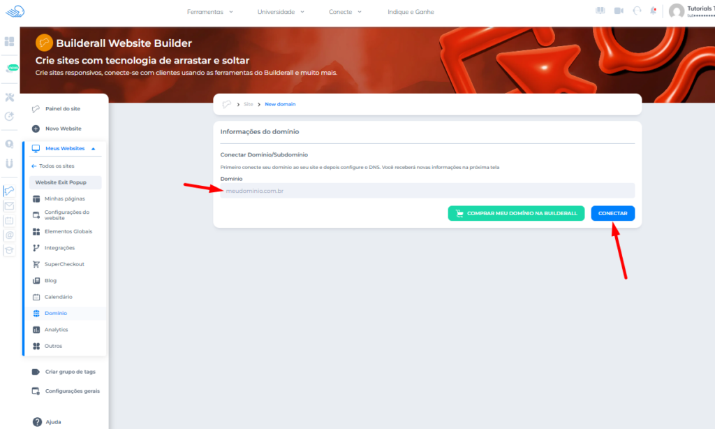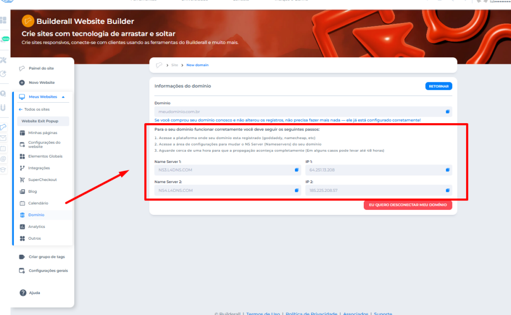 • Certifique-se de que você já possui um domínio registrado. Caso ainda não tenha, a Builderall oferece o serviço de venda de domínios.
